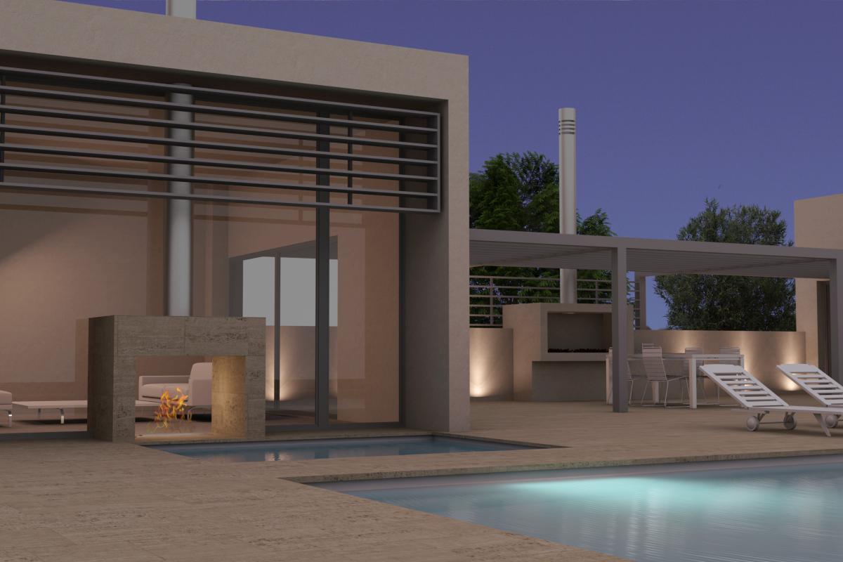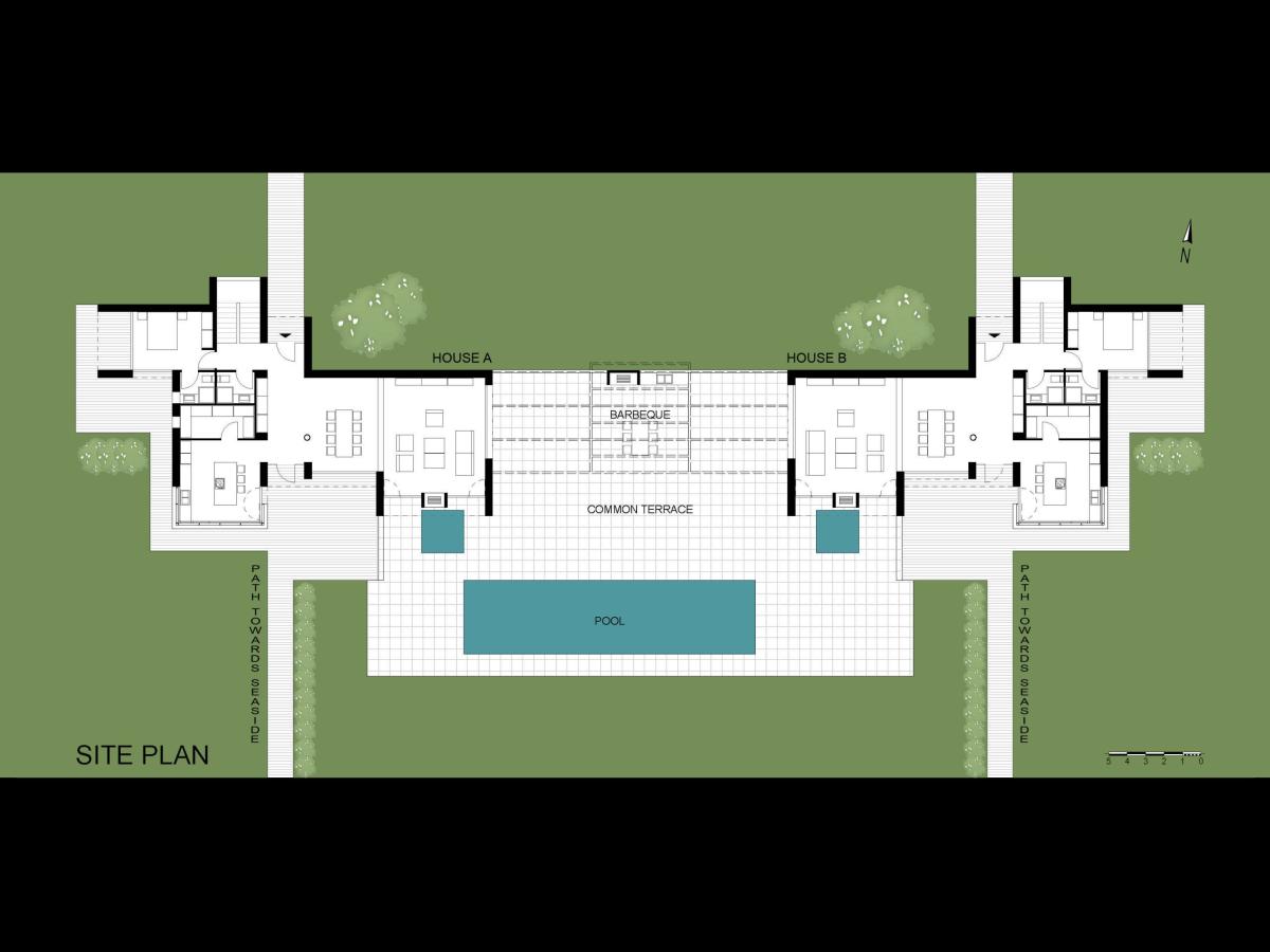 Ο κοινόχρηστος  χώρος του barbeque και της πισίνας ανάμεσα στις δύο κατοικίες είναι ο χώρος συγκέντρωσης και χαλάρωσης των δύο οικογενειών.