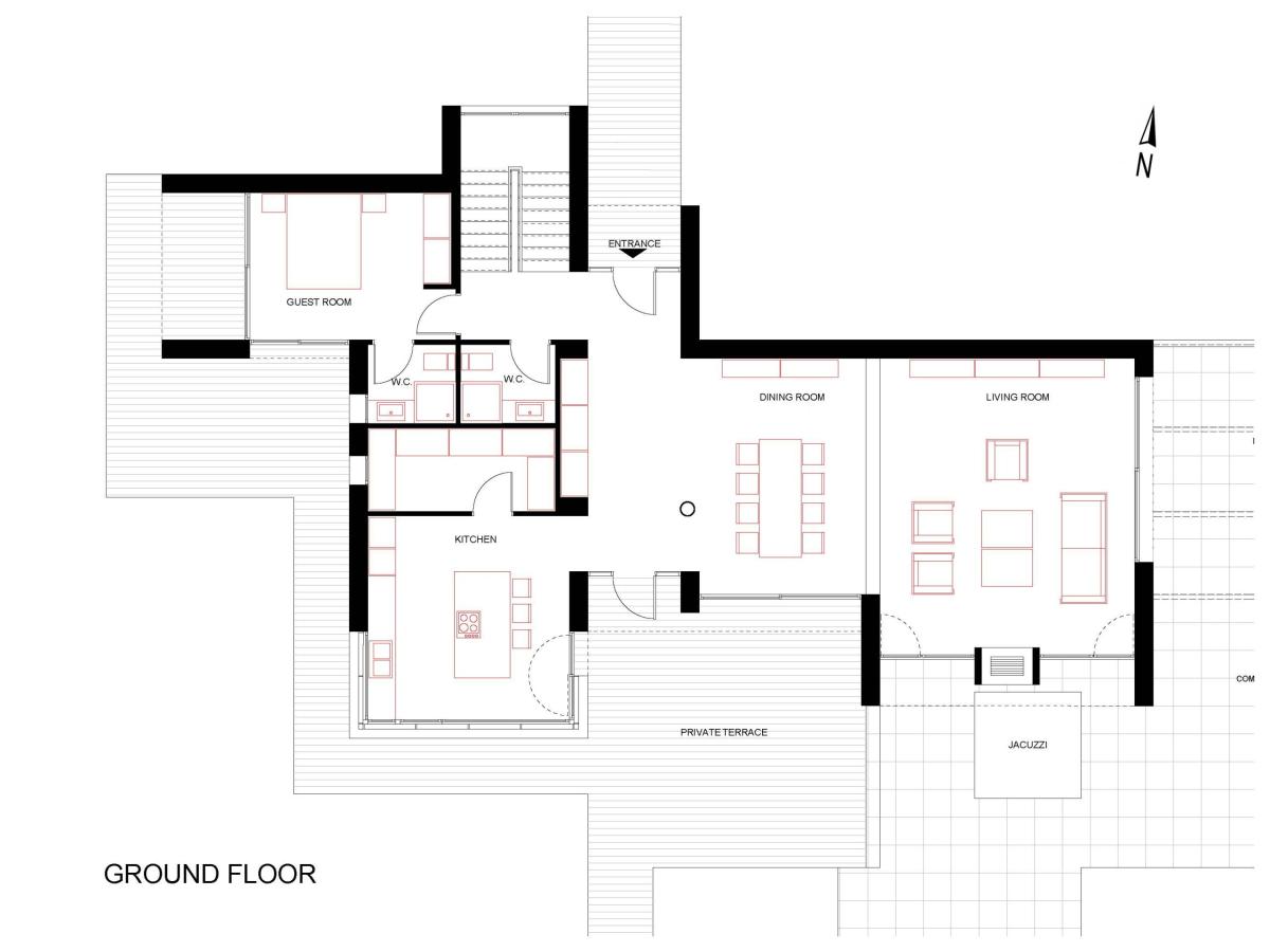Η μελέτη προβλέπει, σύμφωνα με τις απαιτήσεις των πελατών, δυο δίδυμες κατοικίες για τους γονείς και τα παιδιά τους αντίστοιχα.