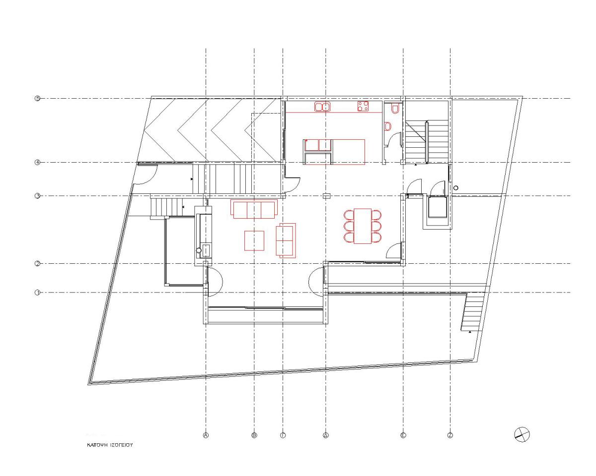 Η κατοικία αναπτύσσεται σε τρία επίπεδα, υπόγειο – ισόγειο – όροφο σε γωνιακό οικόπεδο 250 τετραγωνικών μέτρων, στην “επέκταση ευαγγελικών” Κατερίνης.