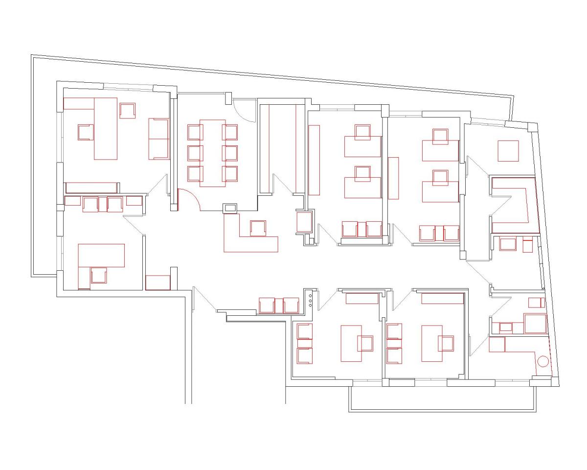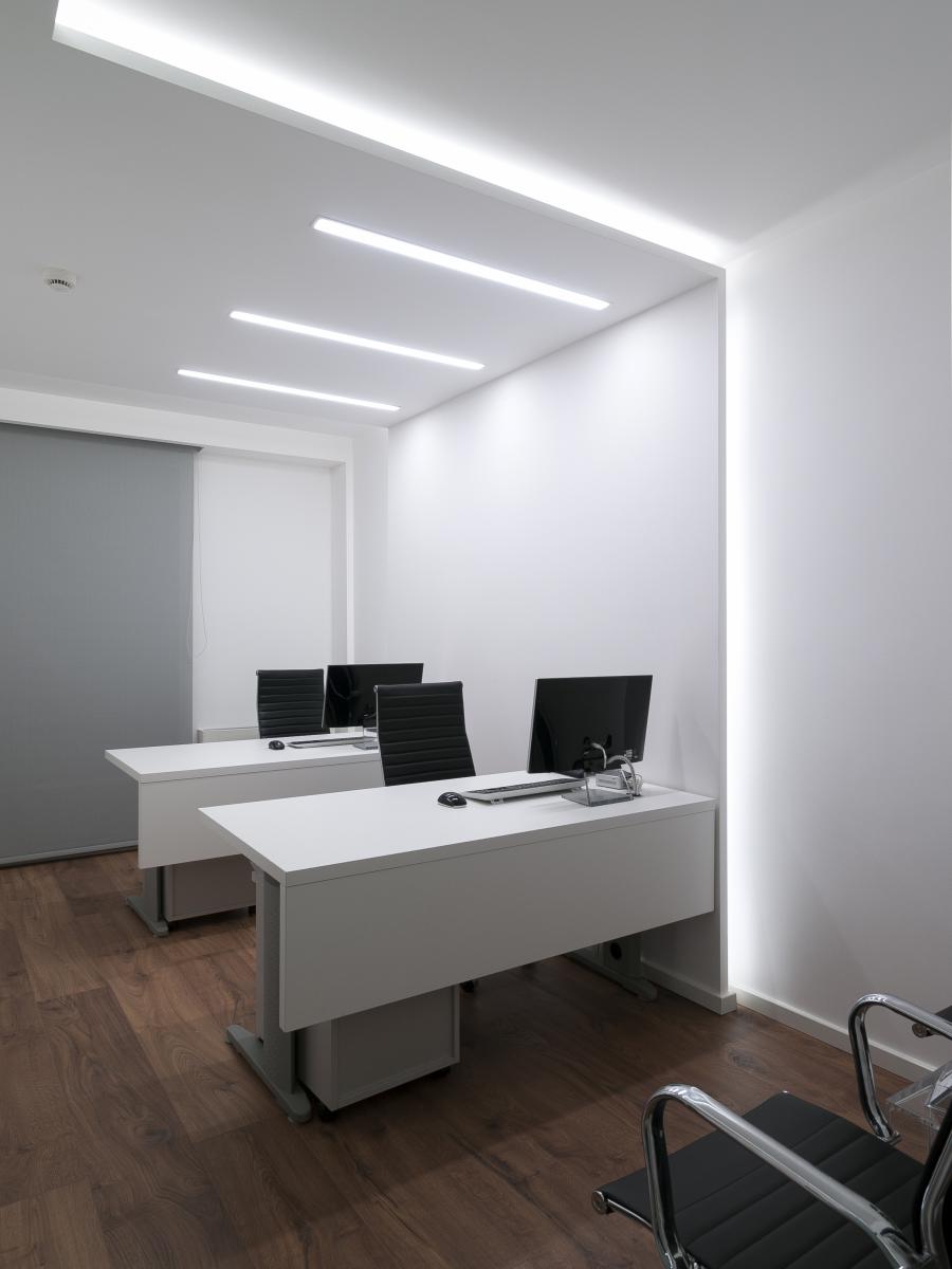 Τα γραφεία επιτρέπουν τη ροή του φυσικού φωτός στον κεντρικό διάδρομο, μέσω γυάλινων ημιδιαφανών θυρών διατηρώντας ταυτόχρονα το απόρρητο.