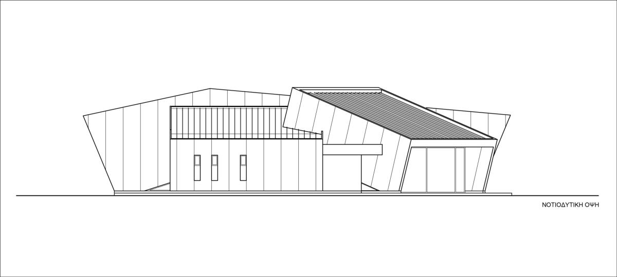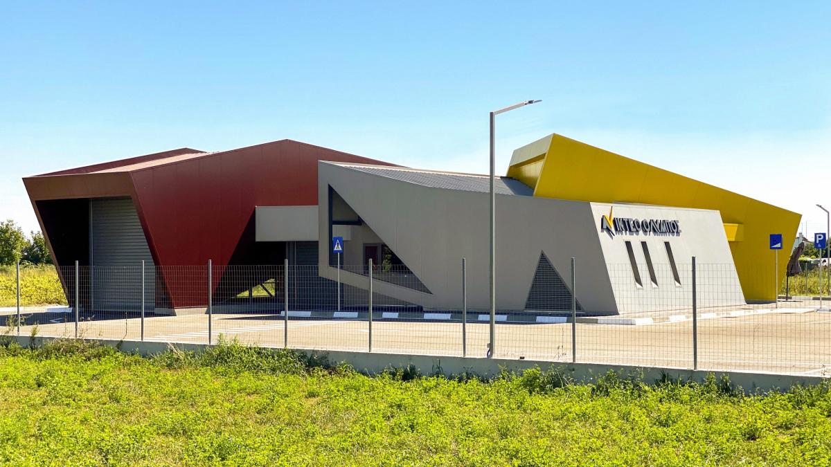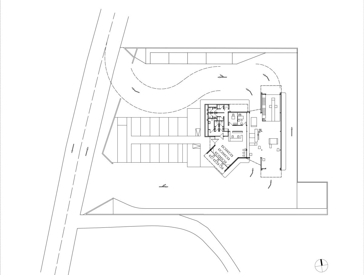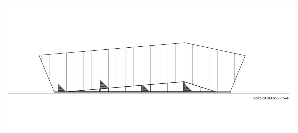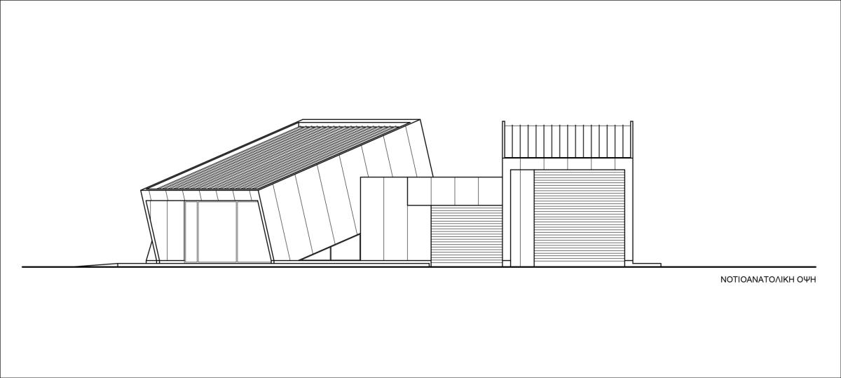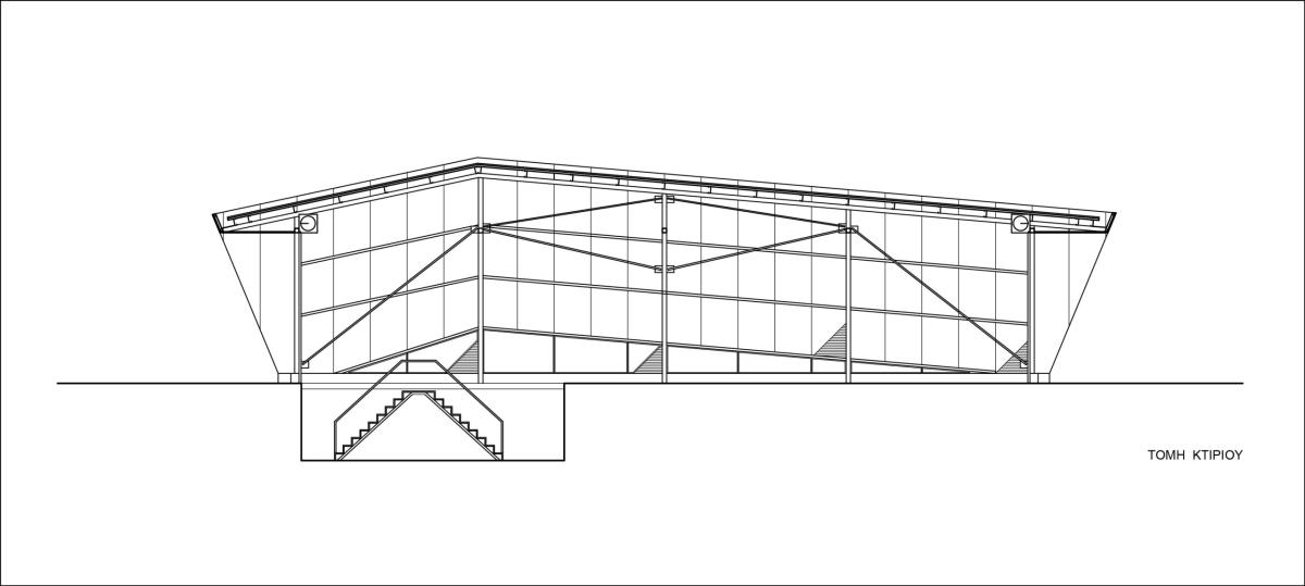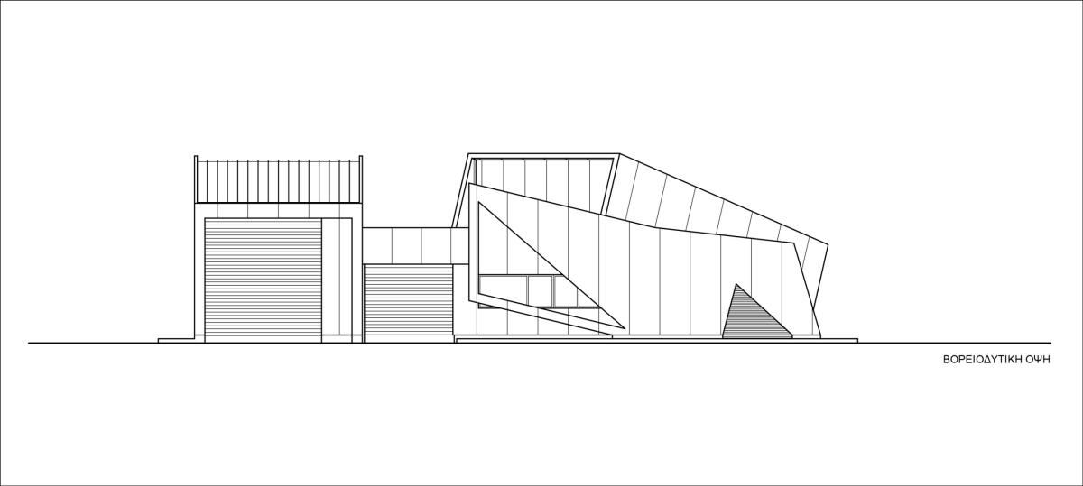 Την κεντρική ιδέα της αρχιτεκτονικής σύνθεσης αποτελεί ο συνδυασμός τριών όγκων διαφορετικής γεωμετρίας, που στεγάζουν και προβάλλουν εξωτερικά τους τρεις τομείς της λειτουργικής οργάνωσης του κτιρίου, τον έλεγχο των οχημάτων, τον χώρο της γραμματείας και των γραφείων και τον χώρο υποδοχής.