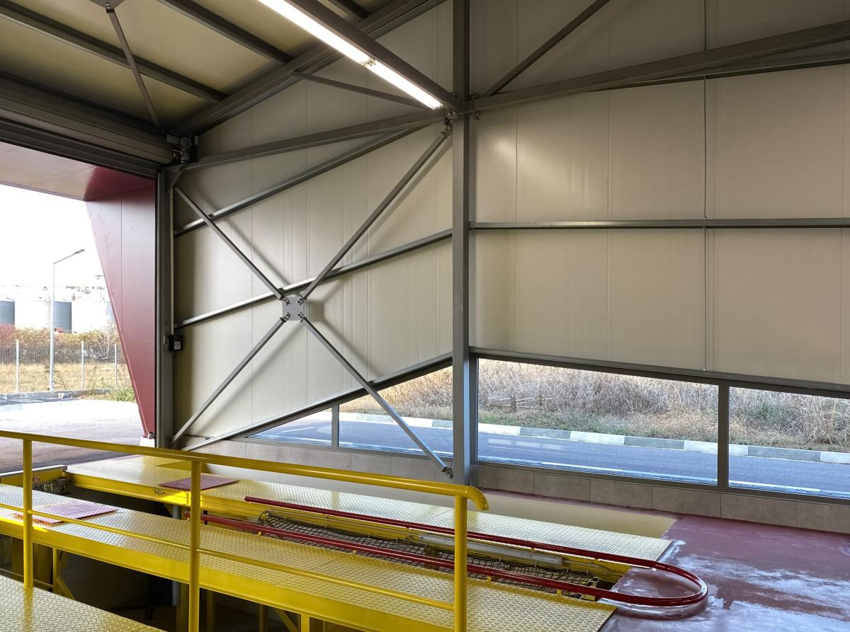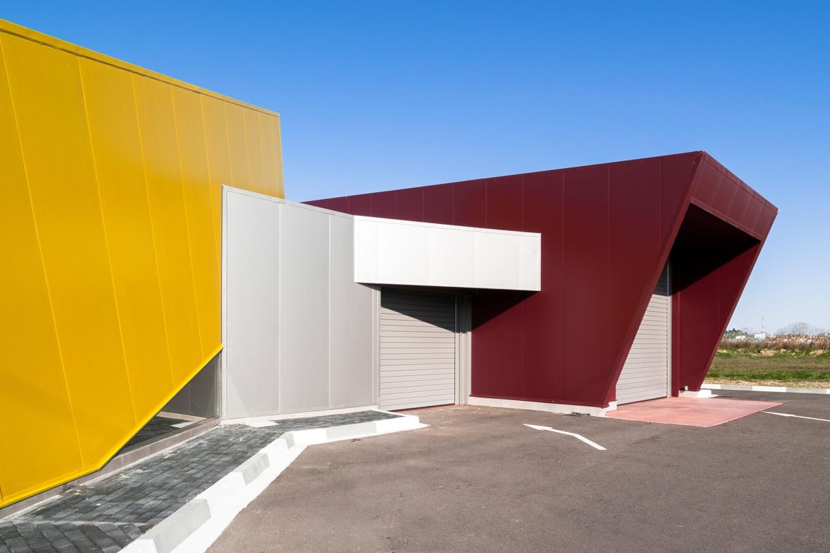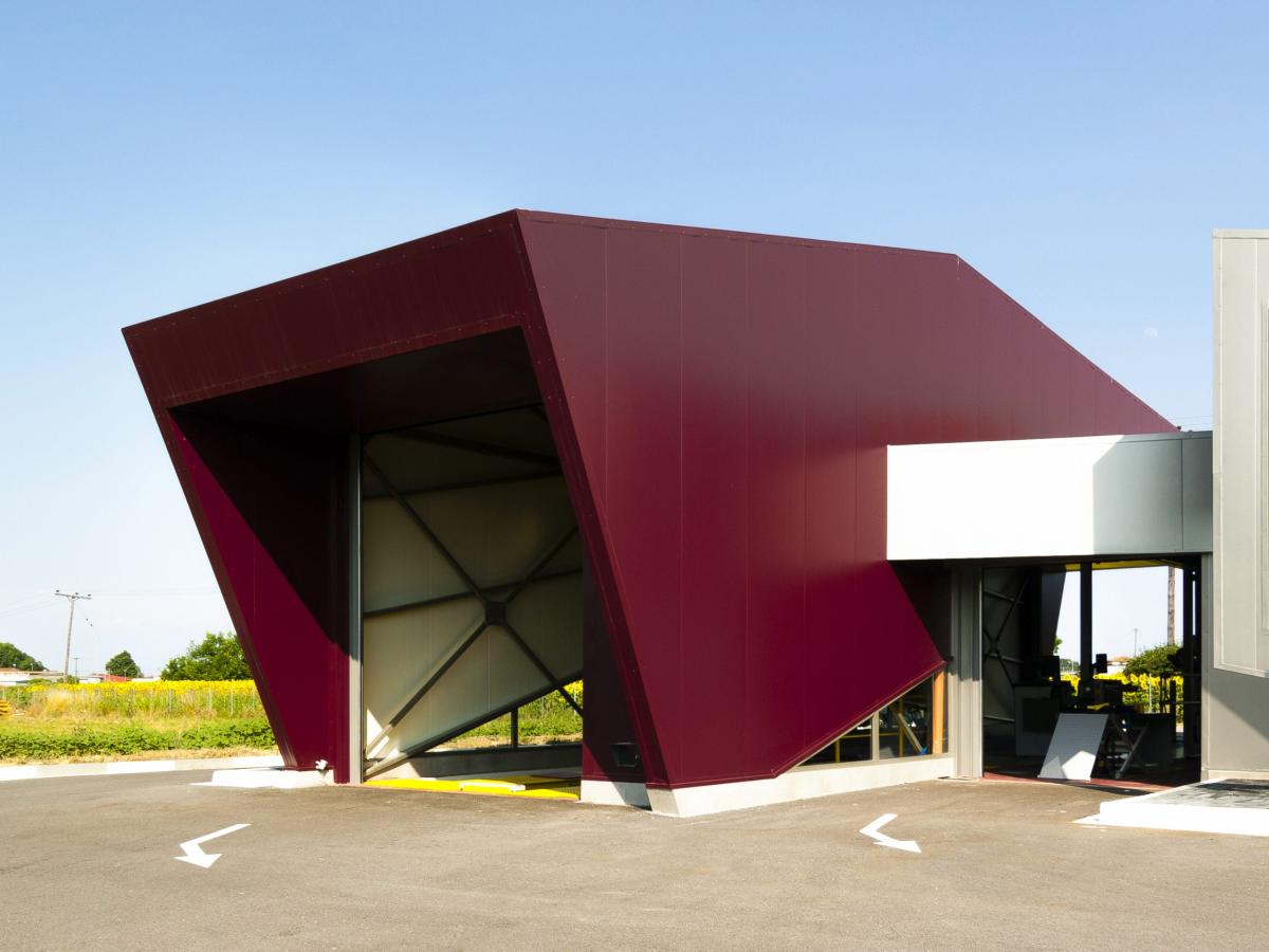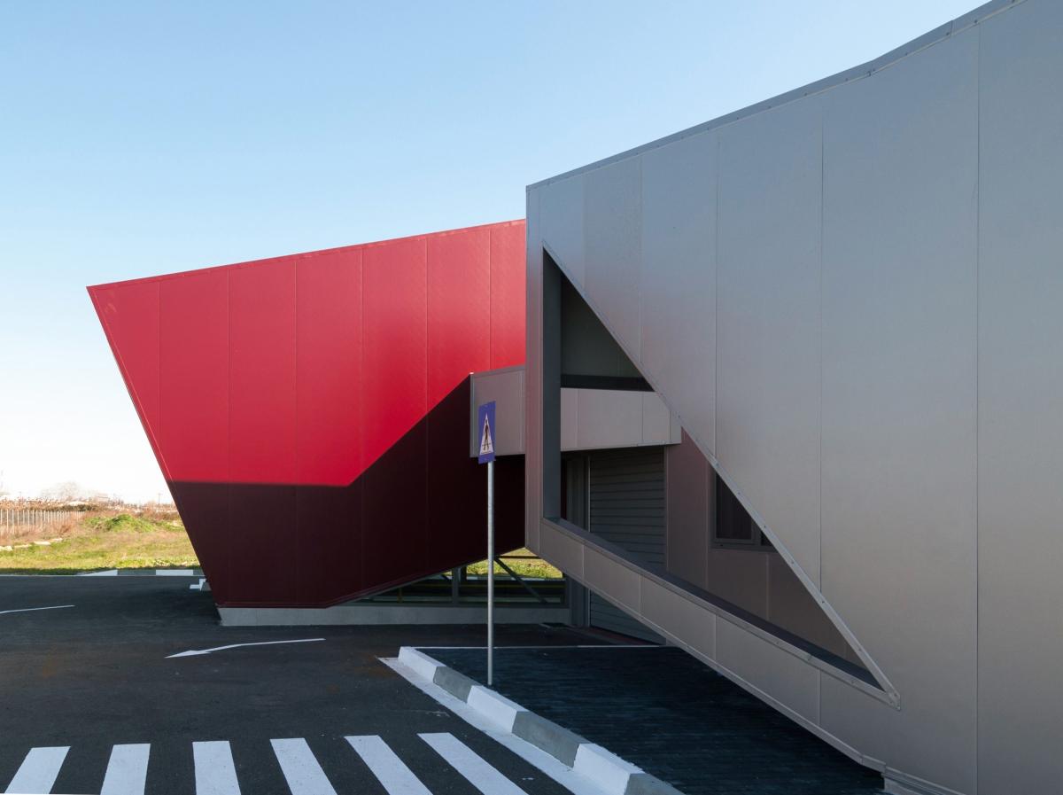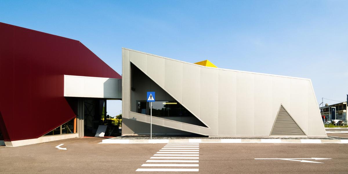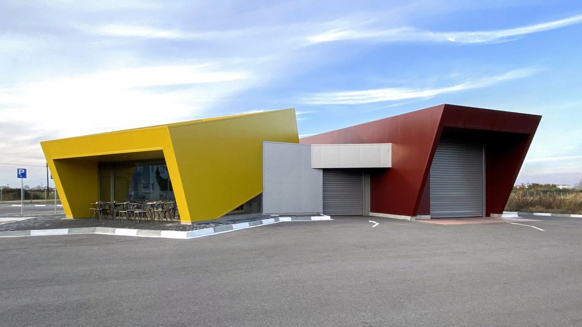 Την κεντρική ιδέα της αρχιτεκτονικής σύνθεσης αποτελεί ο συνδυασμός τριών όγκων διαφορετικής γεωμετρίας, που στεγάζουν και προβάλλουν εξωτερικά τους τρεις τομείς της λειτουργικής οργάνωσης του κτιρίου, τον έλεγχο των οχημάτων, τον χώρο της γραμματείας και των γραφείων και τον χώρο υποδοχής.