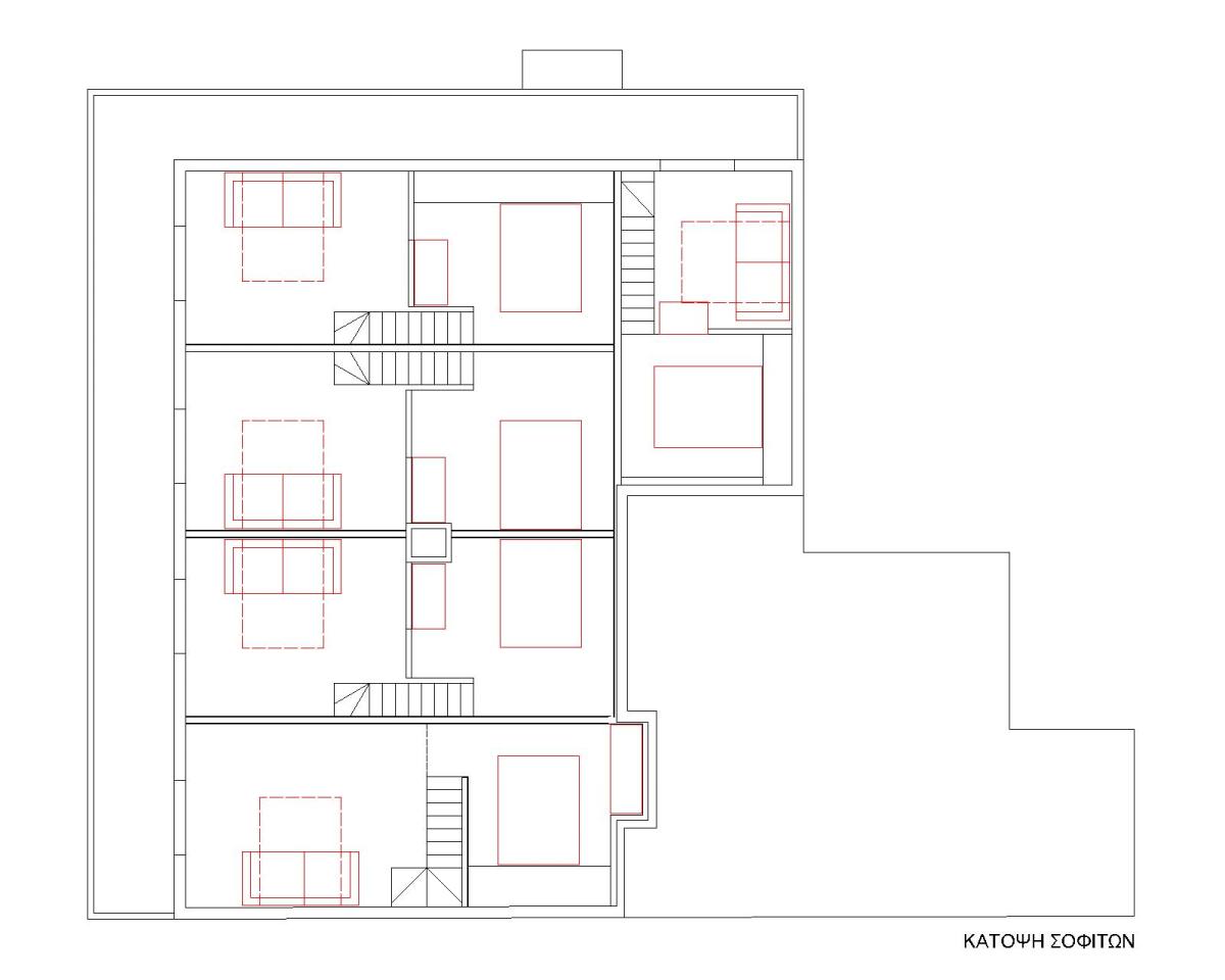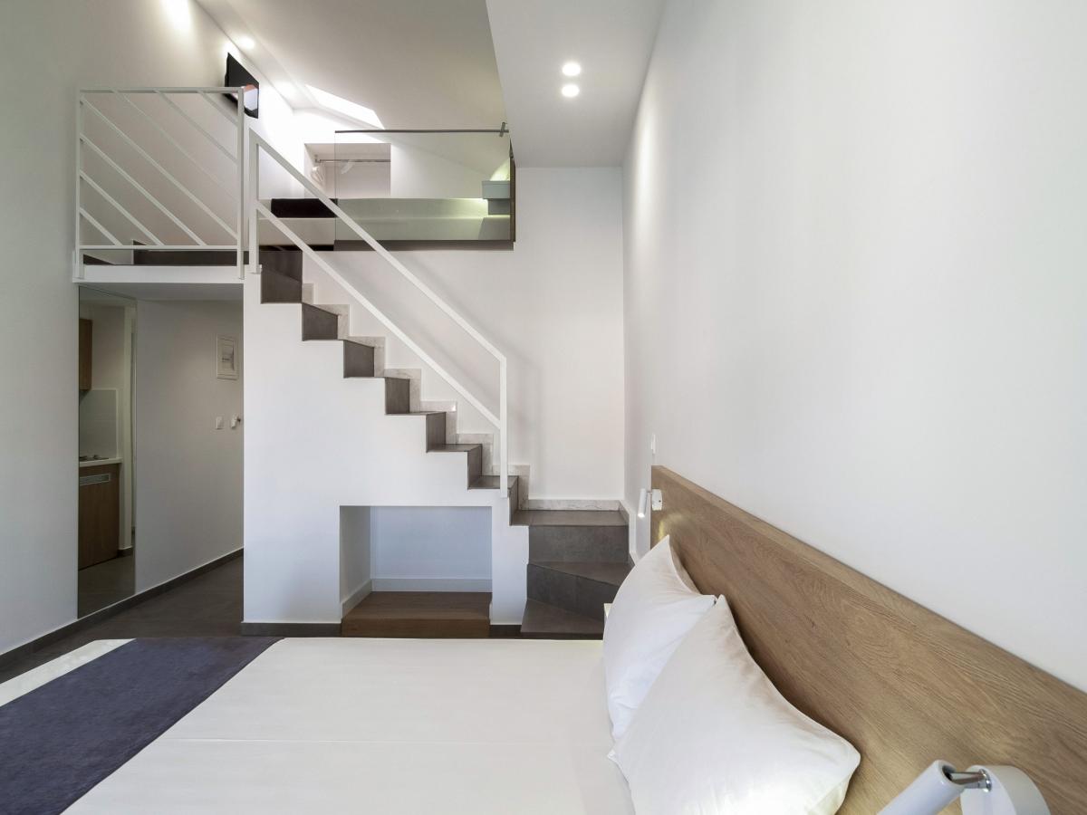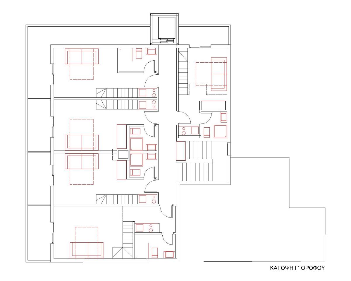 Η εκμετάλλευση του χώρου της στέγης πραγματοποιήθηκε με την δημιουργία στον τρίτο όροφο διώροφων διαμερισμάτων, που η εσωτερική τους σκάλα οδηγεί σε υπνοδωμάτιο μέσα στον χώρο της στέγης.