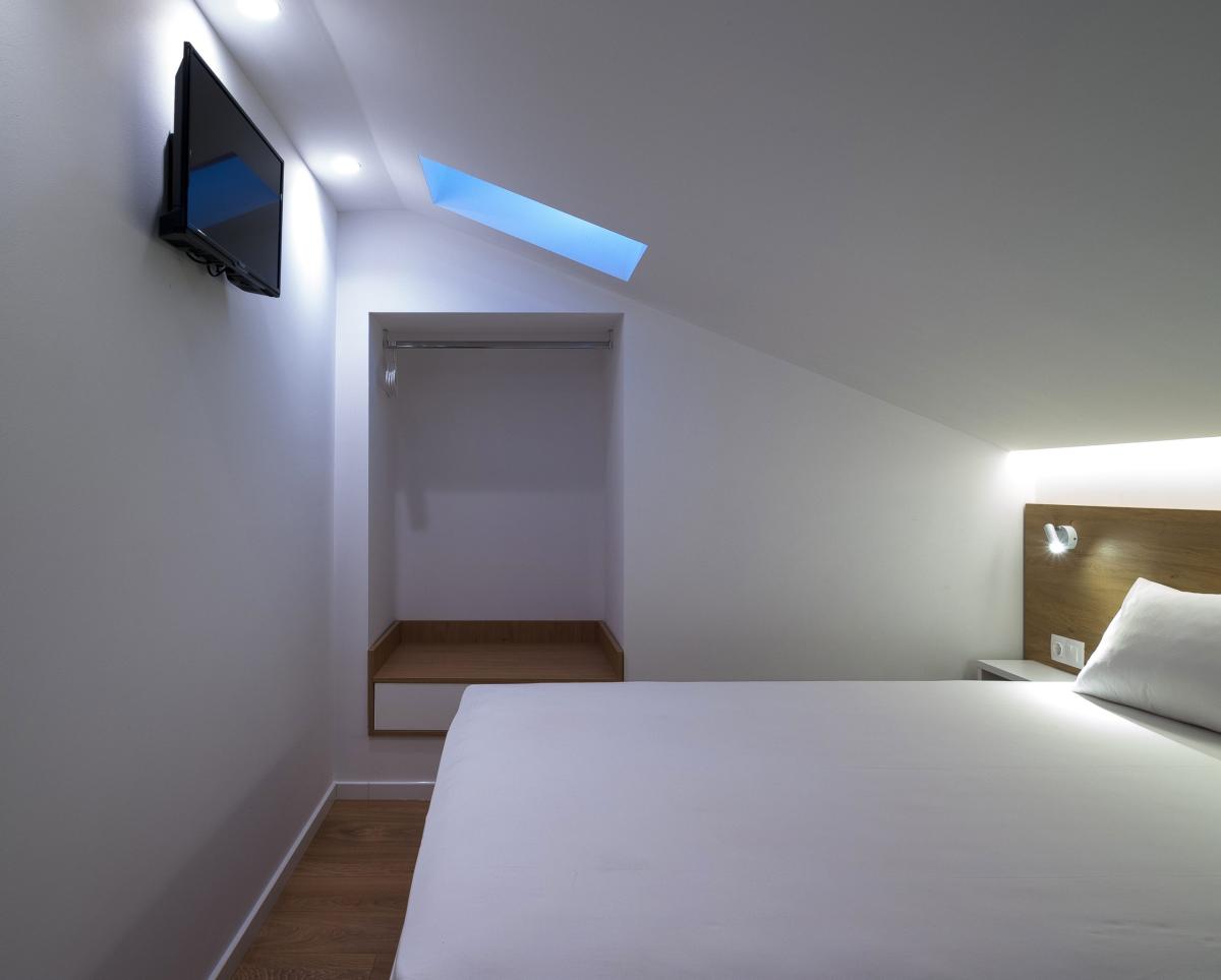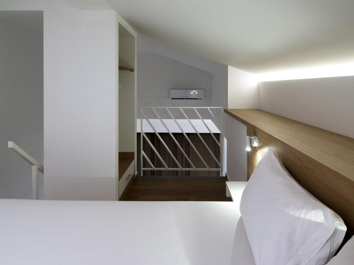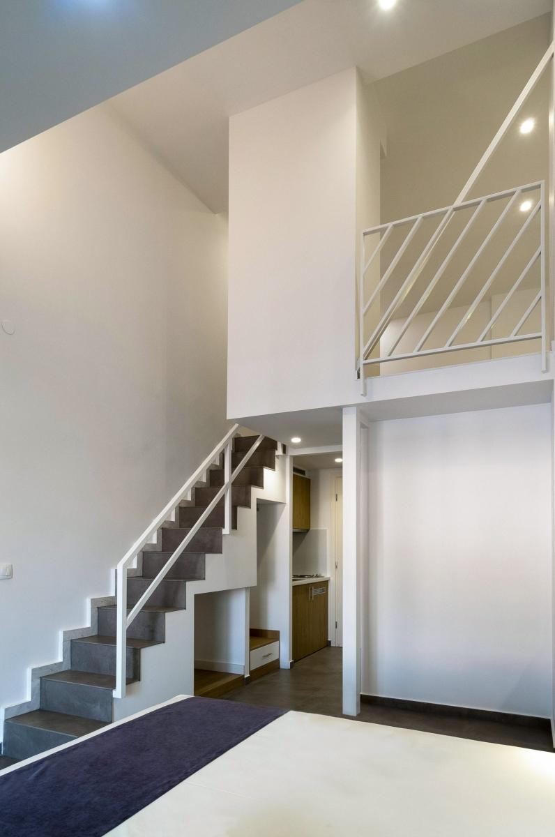 Η εκμετάλλευση του χώρου της στέγης πραγματοποιήθηκε με την δημιουργία στον τρίτο όροφο διώροφων διαμερισμάτων, που η εσωτερική τους σκάλα οδηγεί σε υπνοδωμάτιο μέσα στον χώρο της στέγης.